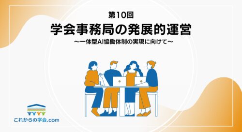 はじめに AIが真に協働する新しい学会運営 これまで9回にわたり、学会事務局における個別業務へのAI導入について検討してきました。会員情報の検索から委員会運営、広報活動、議事録作成、論文関連業務、問合せ対応、ニュースレタ…